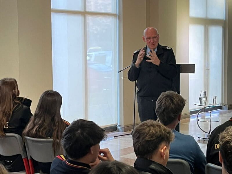 Esta es la segunda ocasión en que el coronel Lothar Likus visita el Colegio Alemán de Santiago. En