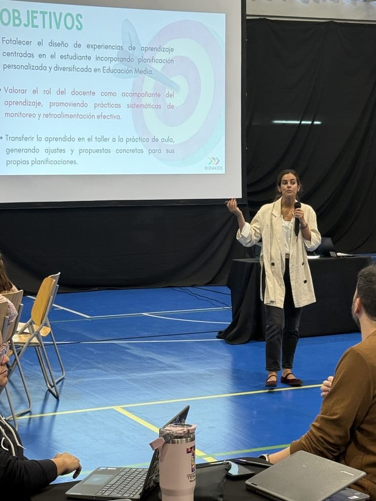 El lunes 23 de marzo se llevó a cabo una capacitación dirigida al equipo docente de la sede Las Condes, a cargo de Andrea Jankelevic, co-fundadora y directora de la consultora Didaksis. Este encuentro se enfocó en fortalecer el diseño de experiencias de aprendizaje para alumnos y alumnas de séptimo a cuarto medio, centradas en el estudiante y el acompañamiento pedagógico que las sostiene.