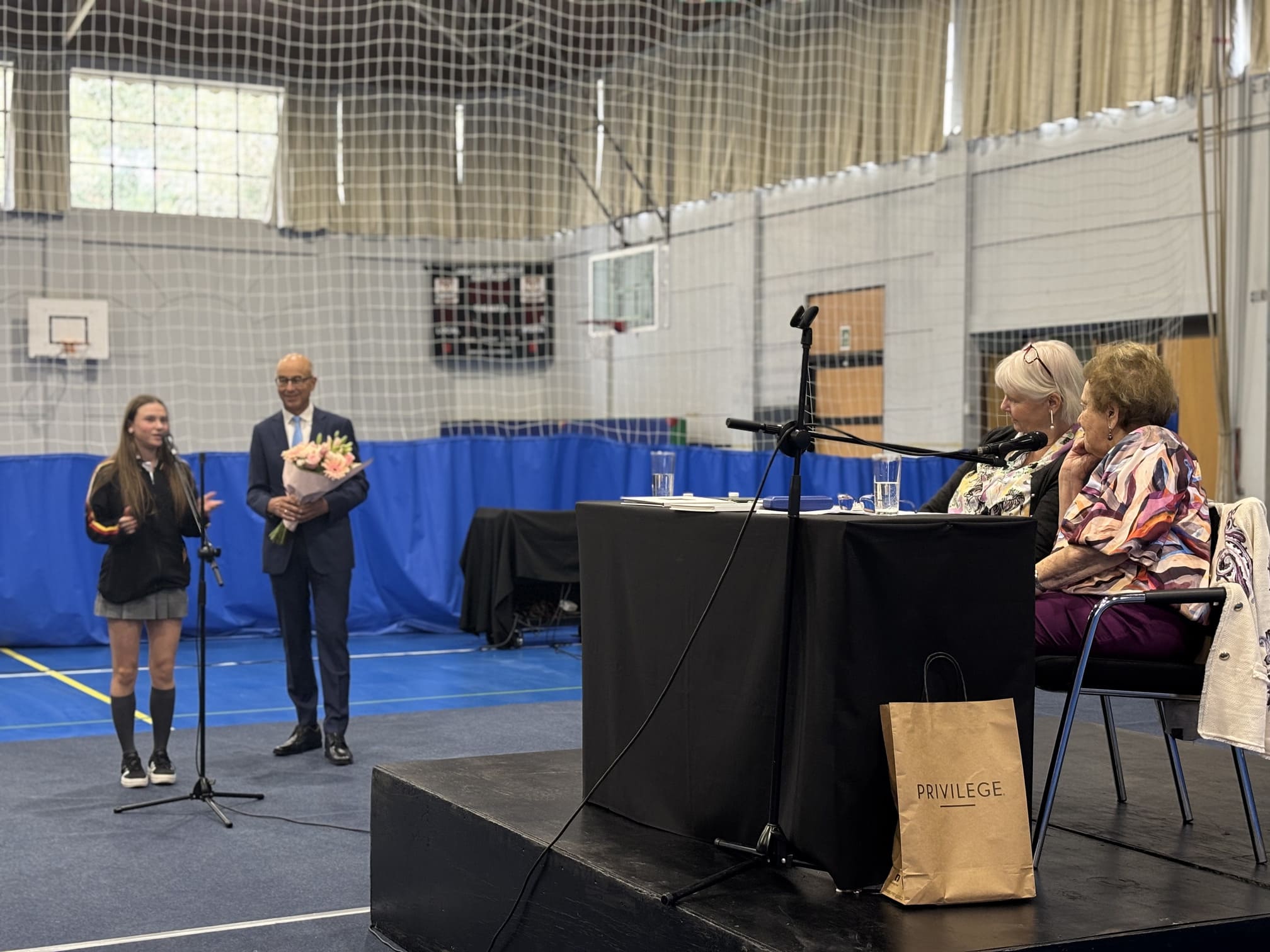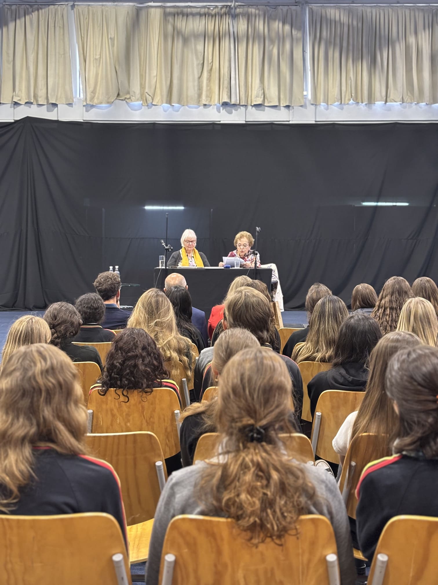 A finales de marzo, tuvimos el privilegio de recibir, por cuarta vez, a la Sra. Ana María Wahrenberg, sobreviviente del Holocausto, quien compartió con los estudiantes de III Medio un testimonio profundamente conmovedor. La charla, organizada por el Departamento de Historia bajo la dirección de Herr Robert Alter, nos permitió acercarnos a uno de los capítulos más oscuros de la historia alemana a través de los ojos de una testigo contemporánea, cuya vida es un ejemplo de resistencia y esperanza.