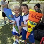 Como es tradición en Alemania y en nuestro colegio, quienes entraron a primero básico recibieron en su primer día una “Schultüte”: un cono de cartón decorado por sus padres, lleno de pequeños regalos y algunos dulces. Todos corrieron alegres y compartieron en una instancia emotiva con sus papás, compañeros nuevos y profesores jefes.