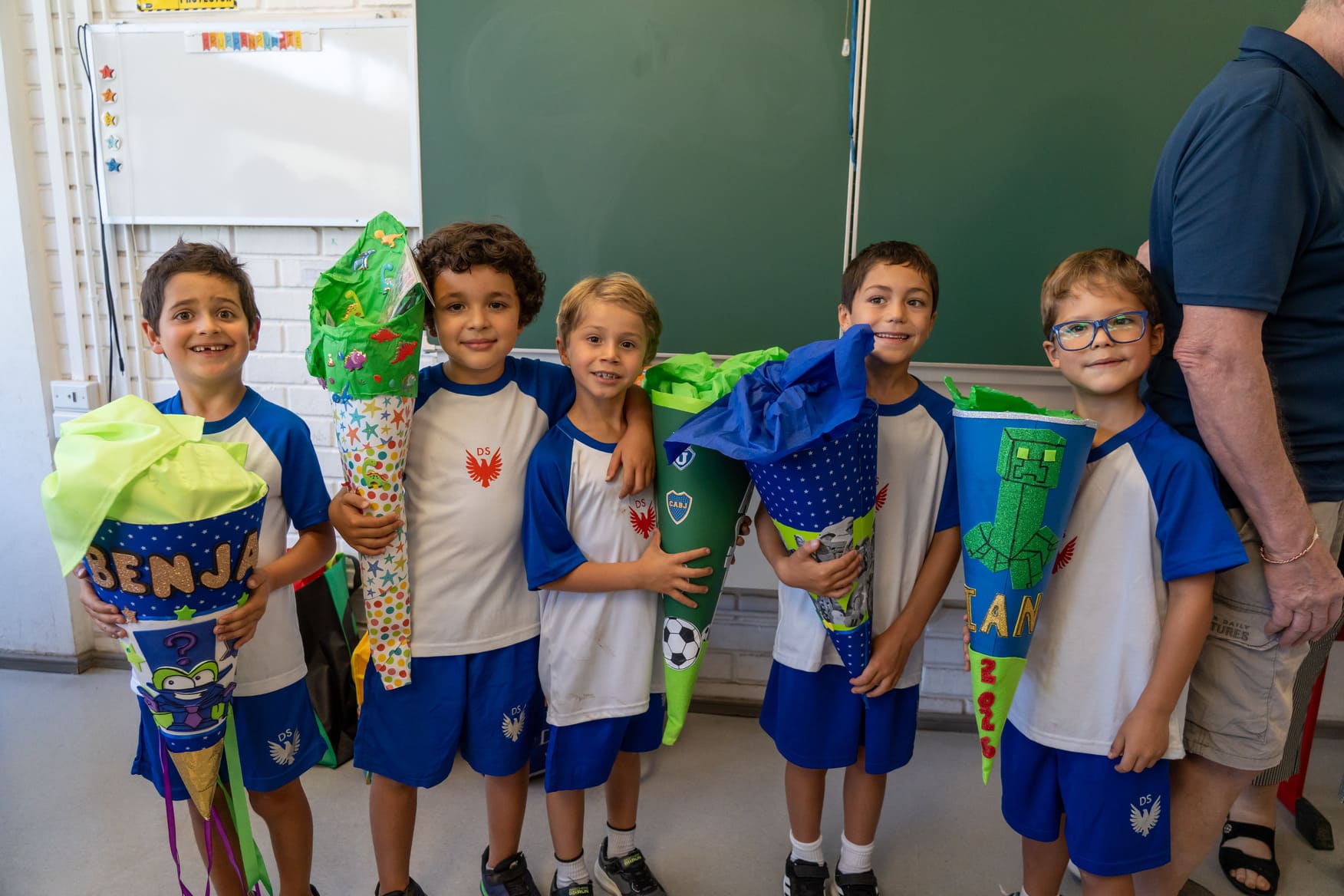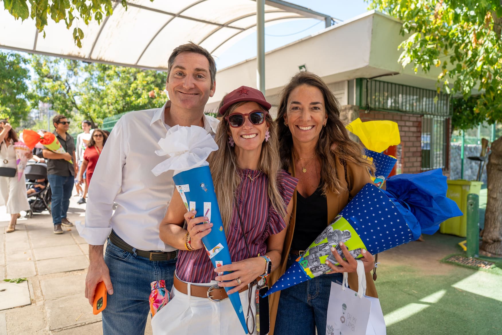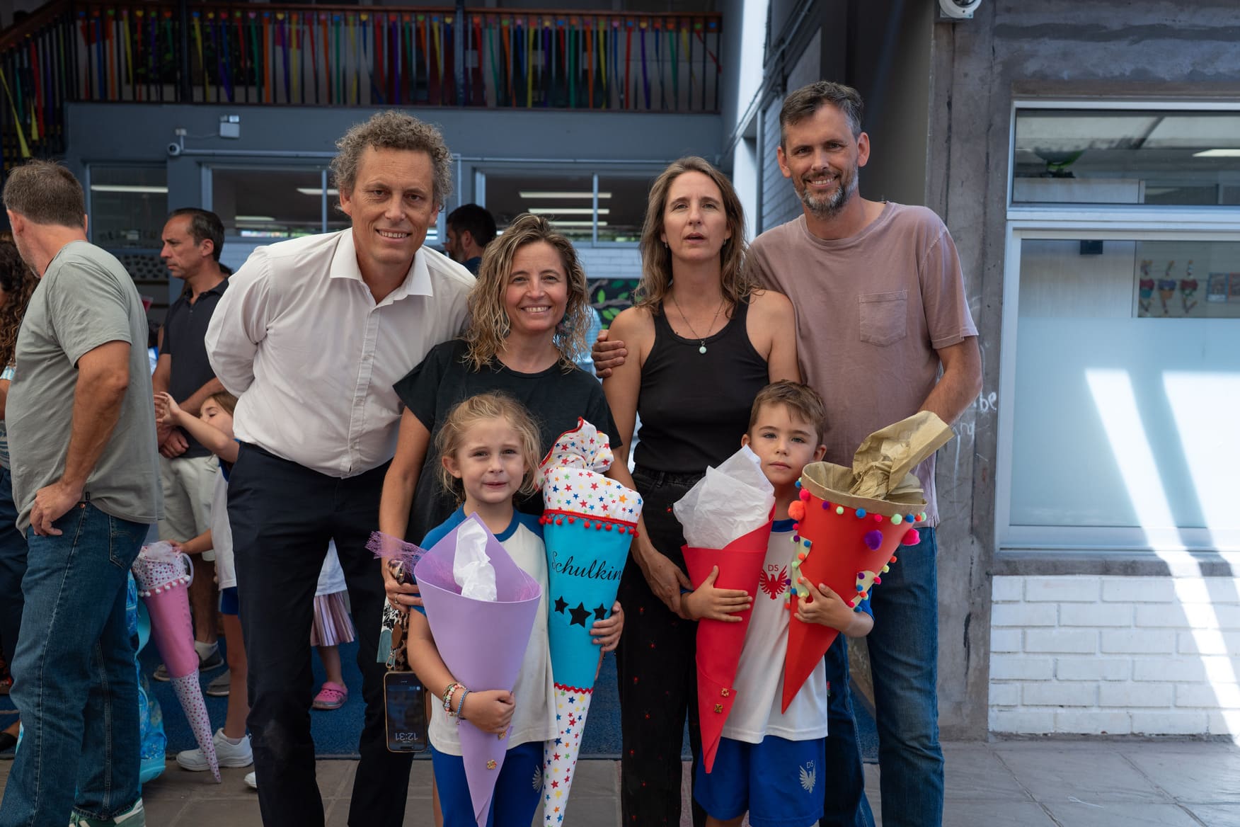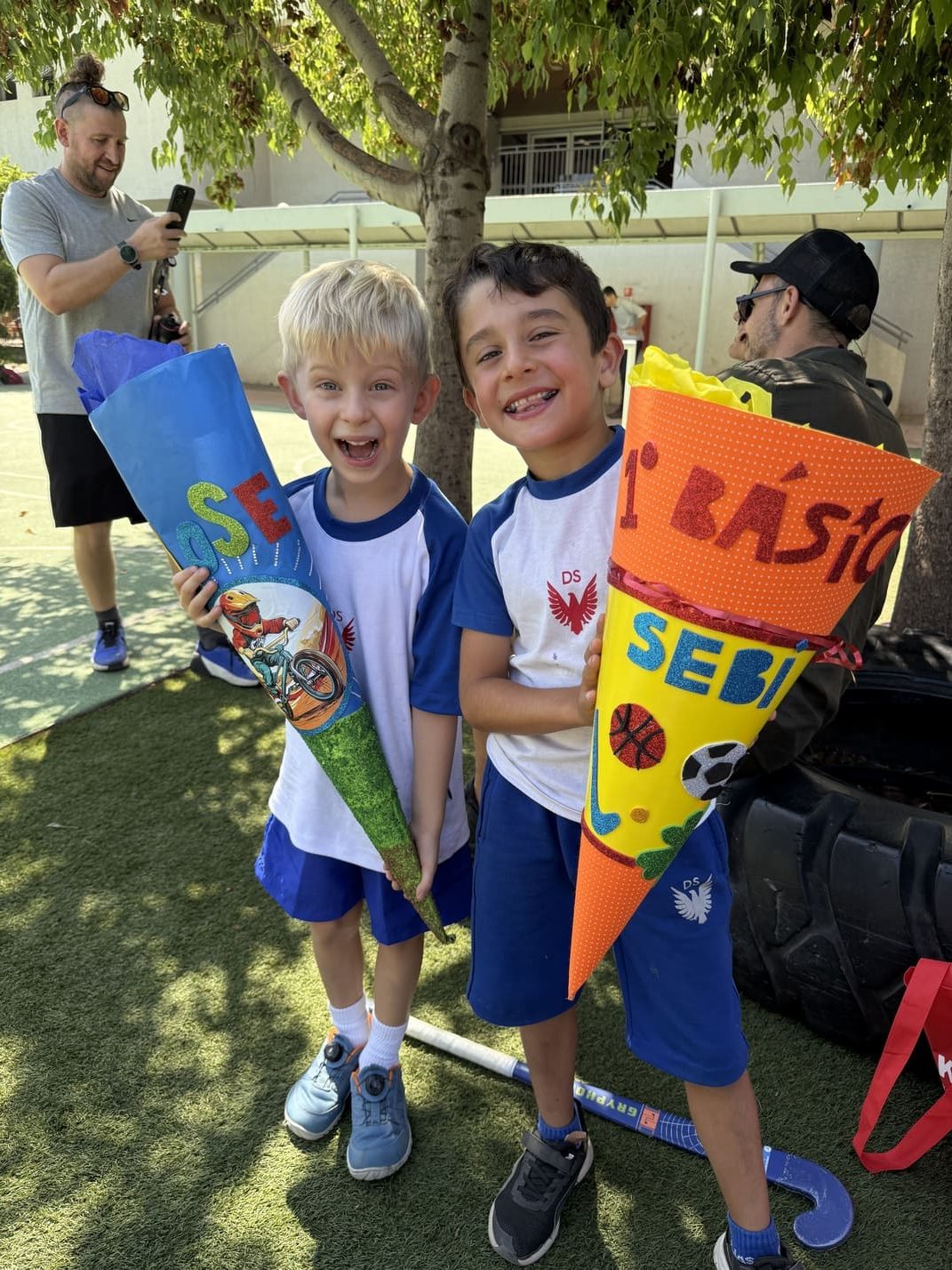 Como es tradición en Alemania y en nuestro colegio, quienes entraron a primero básico recibieron en su primer día una “Schultüte”: un cono de cartón decorado por sus padres, lleno de pequeños regalos y algunos dulces. Todos corrieron alegres y compartieron en una instancia emotiva con sus papás, compañeros nuevos y profesores jefes.