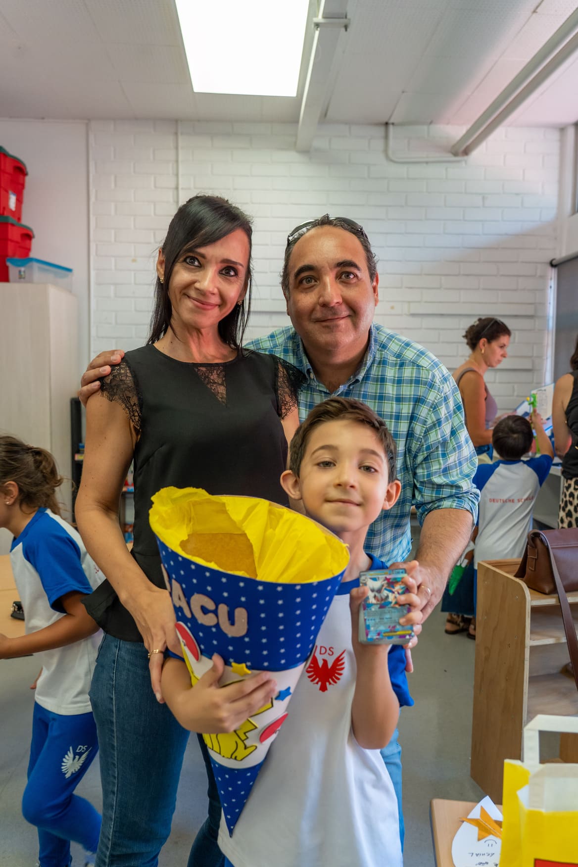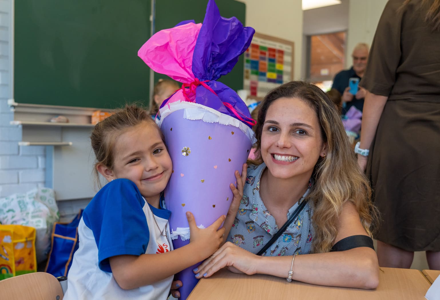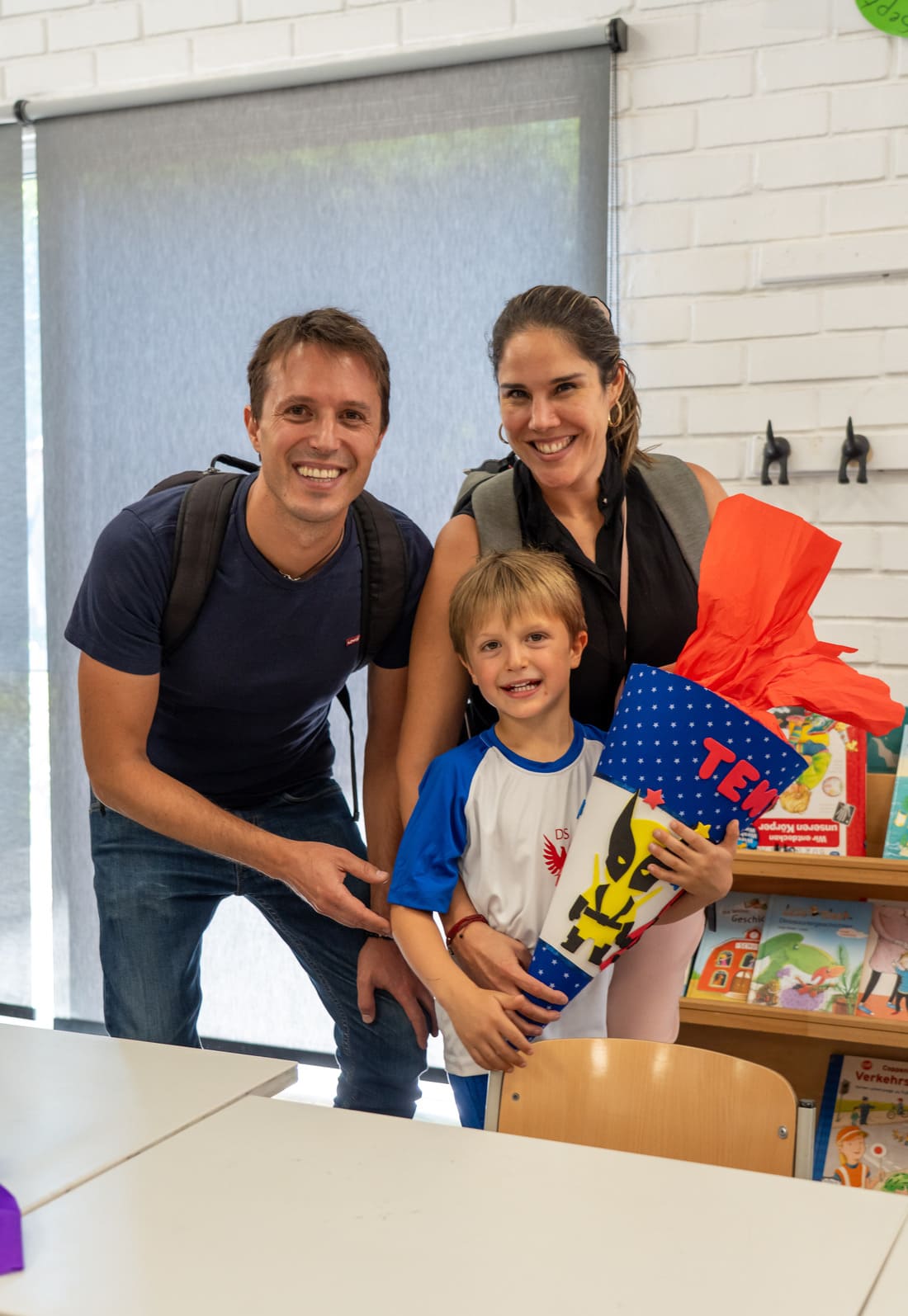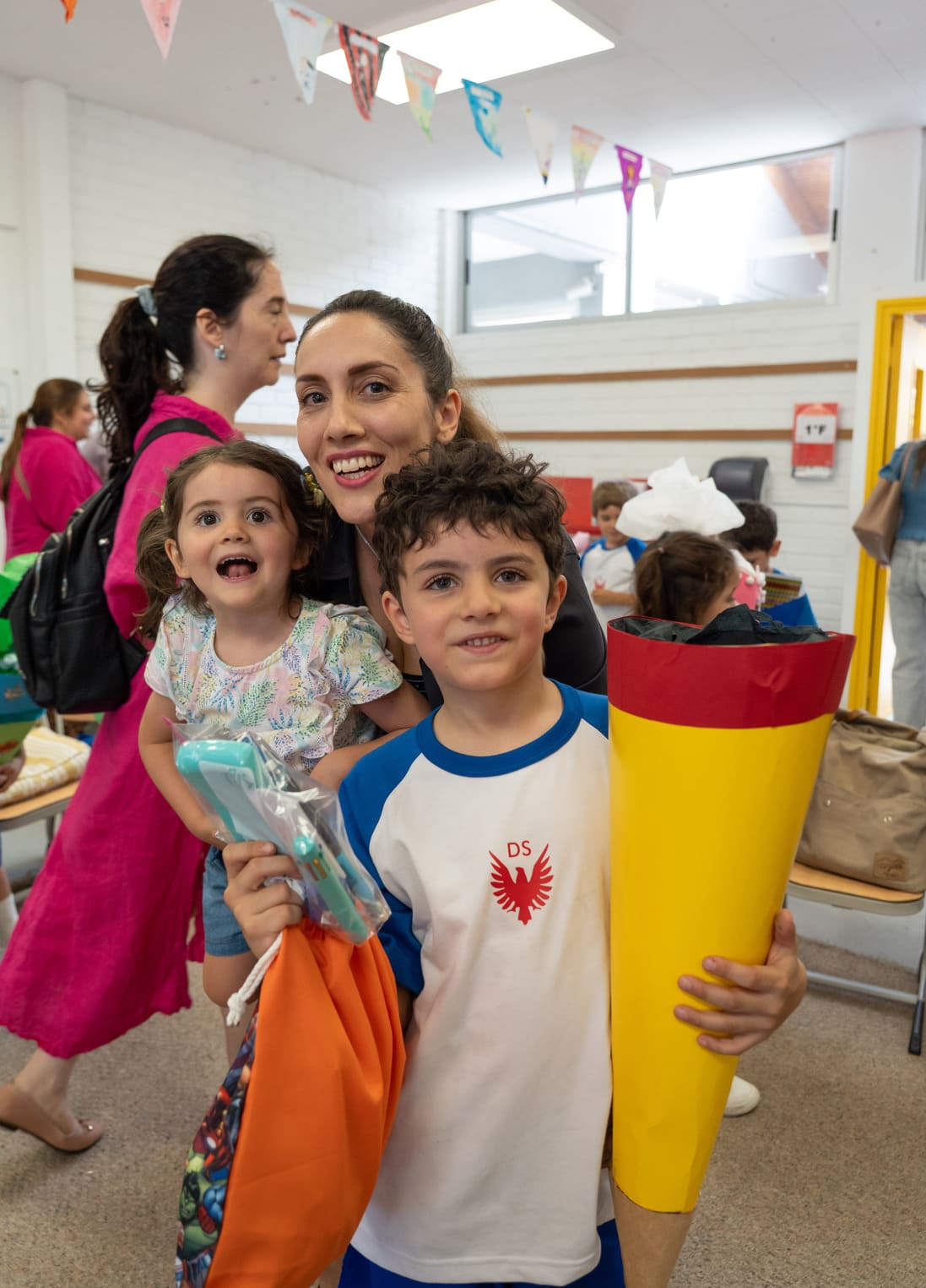 Como es tradición en Alemania y en nuestro colegio, quienes entraron a primero básico recibieron en su primer día una “Schultüte”: un cono de cartón decorado por sus padres, lleno de pequeños regalos y algunos dulces. Todos corrieron alegres y compartieron en una instancia emotiva con sus papás, compañeros nuevos y profesores jefes.