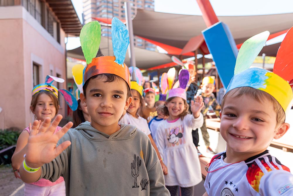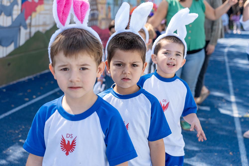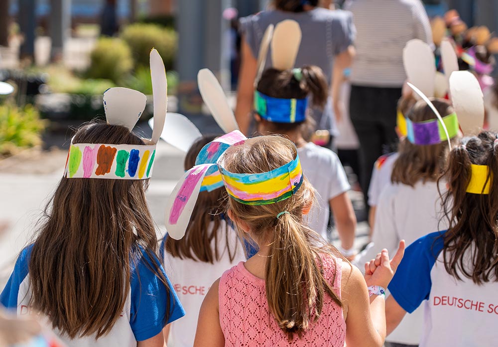 Buscando al Osterhase en Cerro Colorado: Este lunes, los niños y niñas de Cerro Colorado llegaron expectantes luego de Pascua de Resurrección. Las semanas previas habían estado preparando contenedores y canastitos para cuando el conejito pasara por la Schule a dejarle sus huevitos. El lunes, cruzaron a la sede Las Condes buscándolo, atentos, ¡y al volver se encontraron con la sorpresa de que mientras lo buscaban, éste ya había pasado por sus salas! La alegría fue grande y queremos compartir con ustedes parte de lo que fue esa mañana.