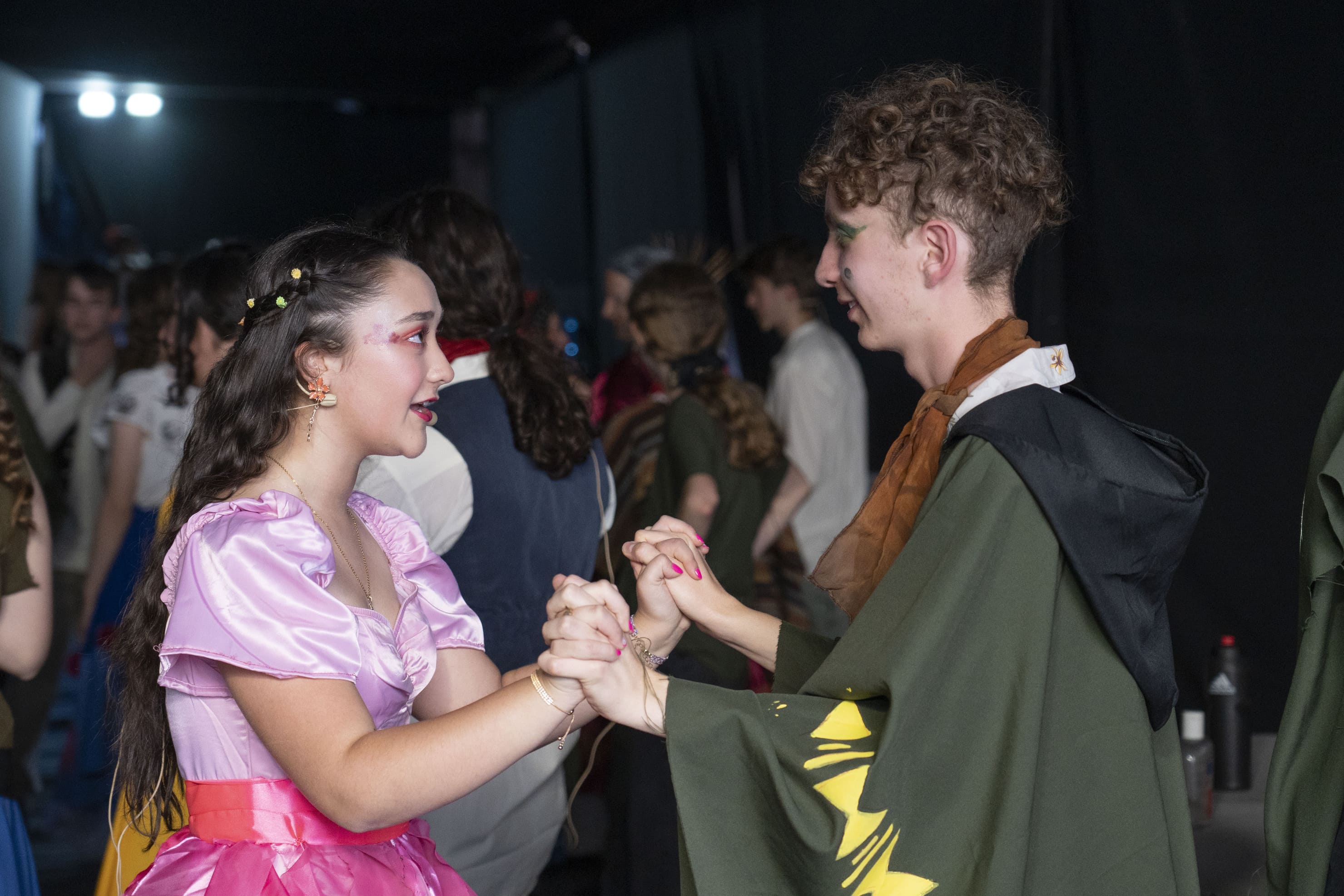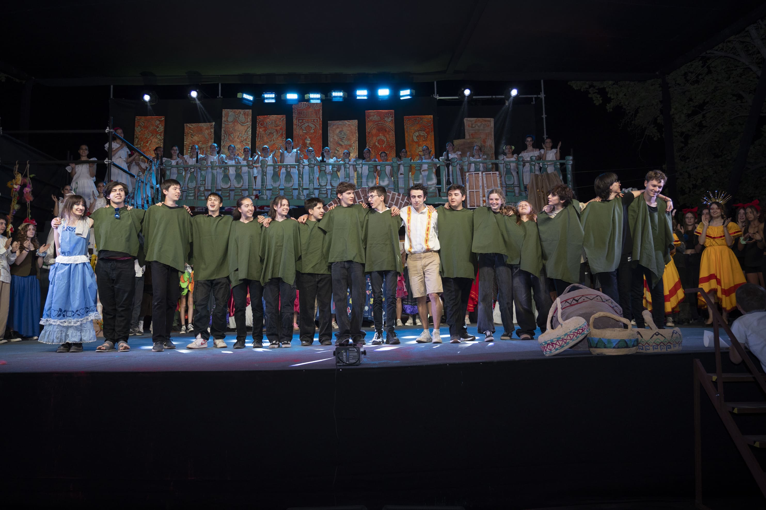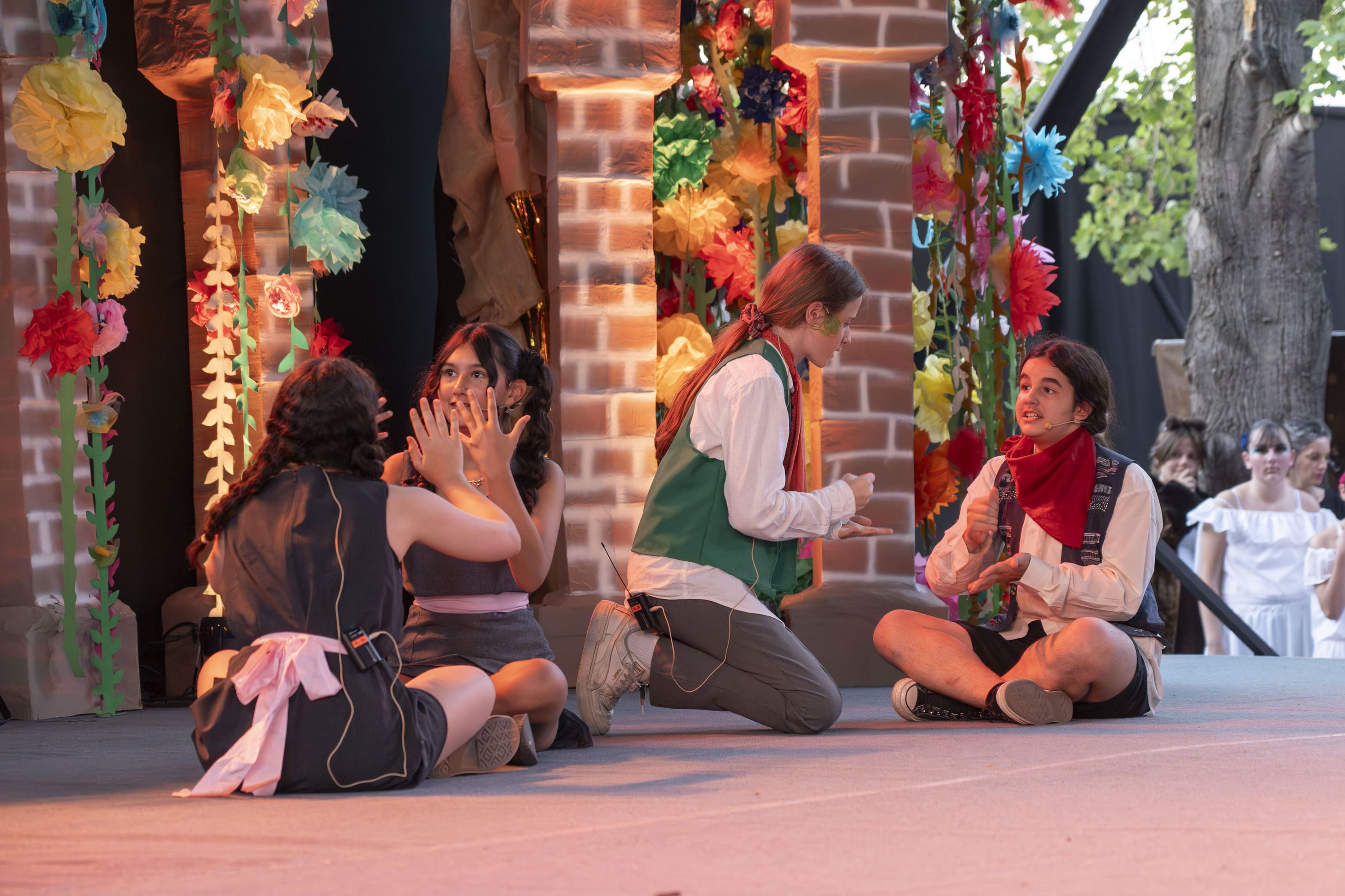 Este musical no solo destacó por su calidad, sino también por el trabajo colaborativo. Los estudiantes de las AGs de Teatro, Danza, Grupo Vocal y Banda brillaron en sus actuaciones, mientras que otros estudiantes desempeñaron roles clave como tramoyas y maquilladores, asegurando que cada detalle estuviera cuidado. Los impresionantes vestuarios, diseñados por los estudiantes de I Medio, junto con la escenografía y utilería creadas en las asignaturas de Arte y Tecnología, completaron el espectacular escenario.