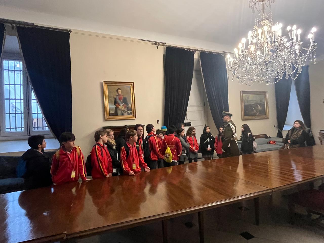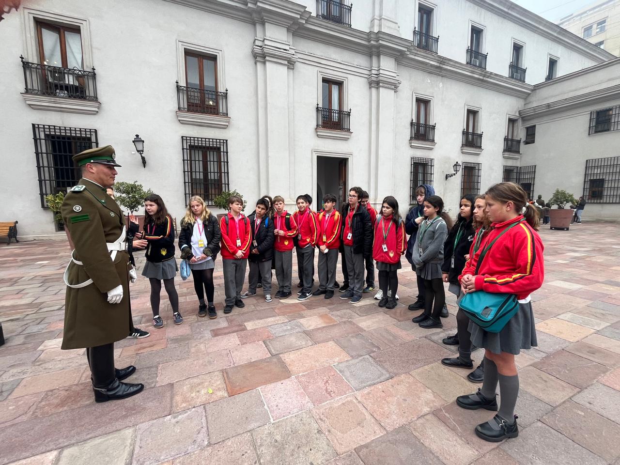 Durante la visita, los estudiantes tuvieron la oportunidad de conocer de cerca el Palacio de La Moneda, símbolo de la institucionalidad chilena; explorar la cripta de Bernardo O’Higgins, prócer de la independencia; y recorrer el Museo Histórico Nacional, ubicado en plena Plaza de Armas.