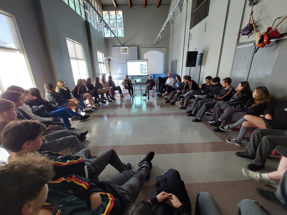 En este encuentro, repasó los principales hitos que han marcado su vida y respondió preguntas de los estudiantes, quienes siguieron con atención y respeto su relato.
