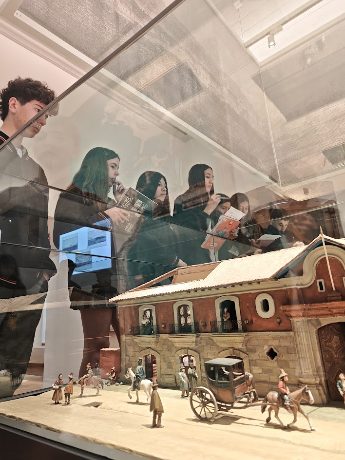 Uno de los momentos más destacados de la visita fue la observación de los dioramas del artista chileno Zerreitug, cuyas esculturas talladas en madera representan con gran realismo escenas clave de la historia nacional. Los estudiantes quedaron impresionados por el nivel de detalle y expresividad de los personajes, lo que permitió una conexión más profunda con los acontecimientos representados.