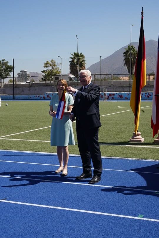 El martes 4 de marzo de 2025, nuestro Colegio Alemán de Santiago vivió un momento histórico: la visita del Presidente de la República Federal de Alemania, Frank-Walter Steinmeier, y su esposa, Elke Büdenbender. Acompañados por la embajadora de Alemania en Chile, Sra. Susanne Fries-Gaier, y una delegación de alto rango del ámbito de la política, la educación, la economía y la ciencia, los invitados fueron calurosamente recibidos por estudiantes y representantes de la dirección y el directorio del Colegio.