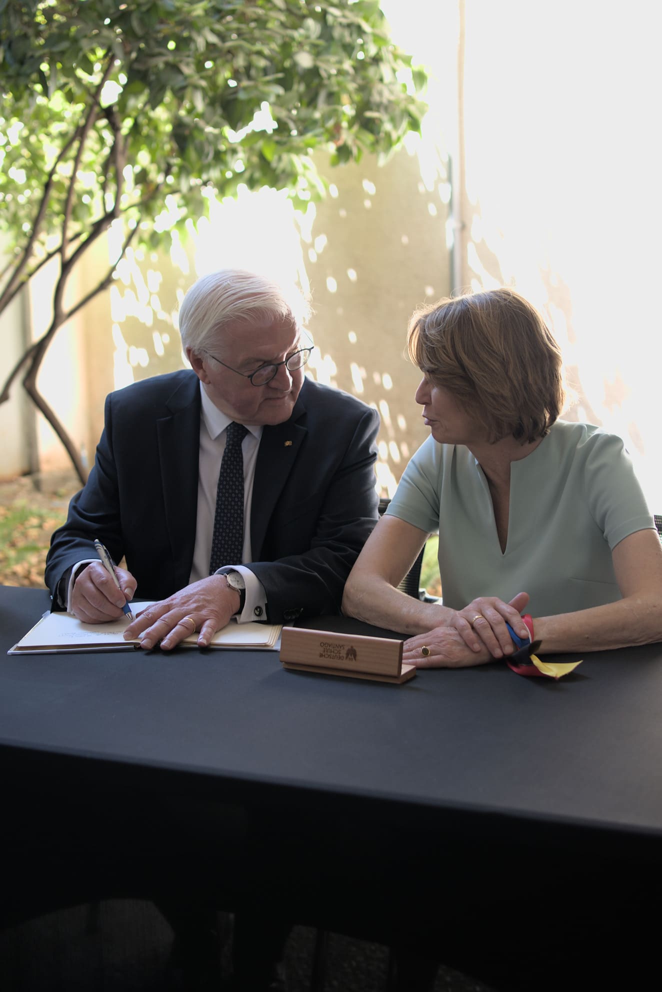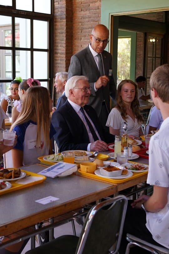 En su entrada en el Libro de Oro, el Presidente Federal Steinmeier se mostró impresionado por los 135 años de tradición de nuestra institución y su orientación vanguardista: “Este Colegio mira al futuro con valentía, creatividad y compromiso y abre perspectivas a sus estudiantes.”