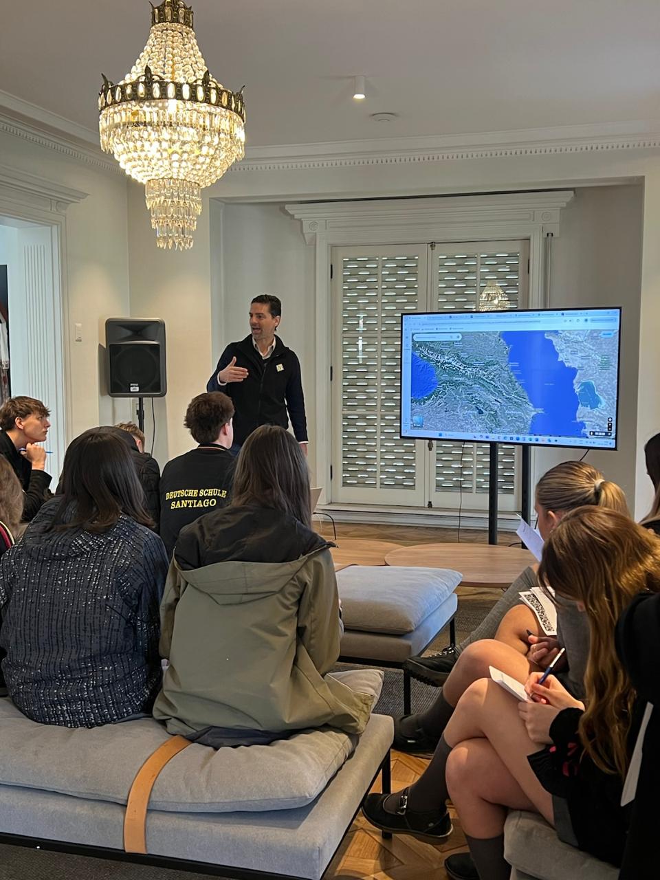 En esta ocasión, fueron recibidos por Dikran Pedinian, ex alumno de Deutsche Schule y actual miembro activo de la Colectividad Armenia de Chile, quien ofreció una clase magistral sobre la historia de Armenia y el aporte realizado por la comunidad armenia en Chile.